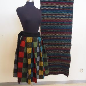 Månadens väv, Emi & Alex härliga tyger, kommer från två härliga vävande ungdomar på Gamleby Folkhögskola som vi träffade under RÅM i Vimmerby. Emi Sällberg & Alex Lytter har vävt fina tyger till kläder som de visar oss här.